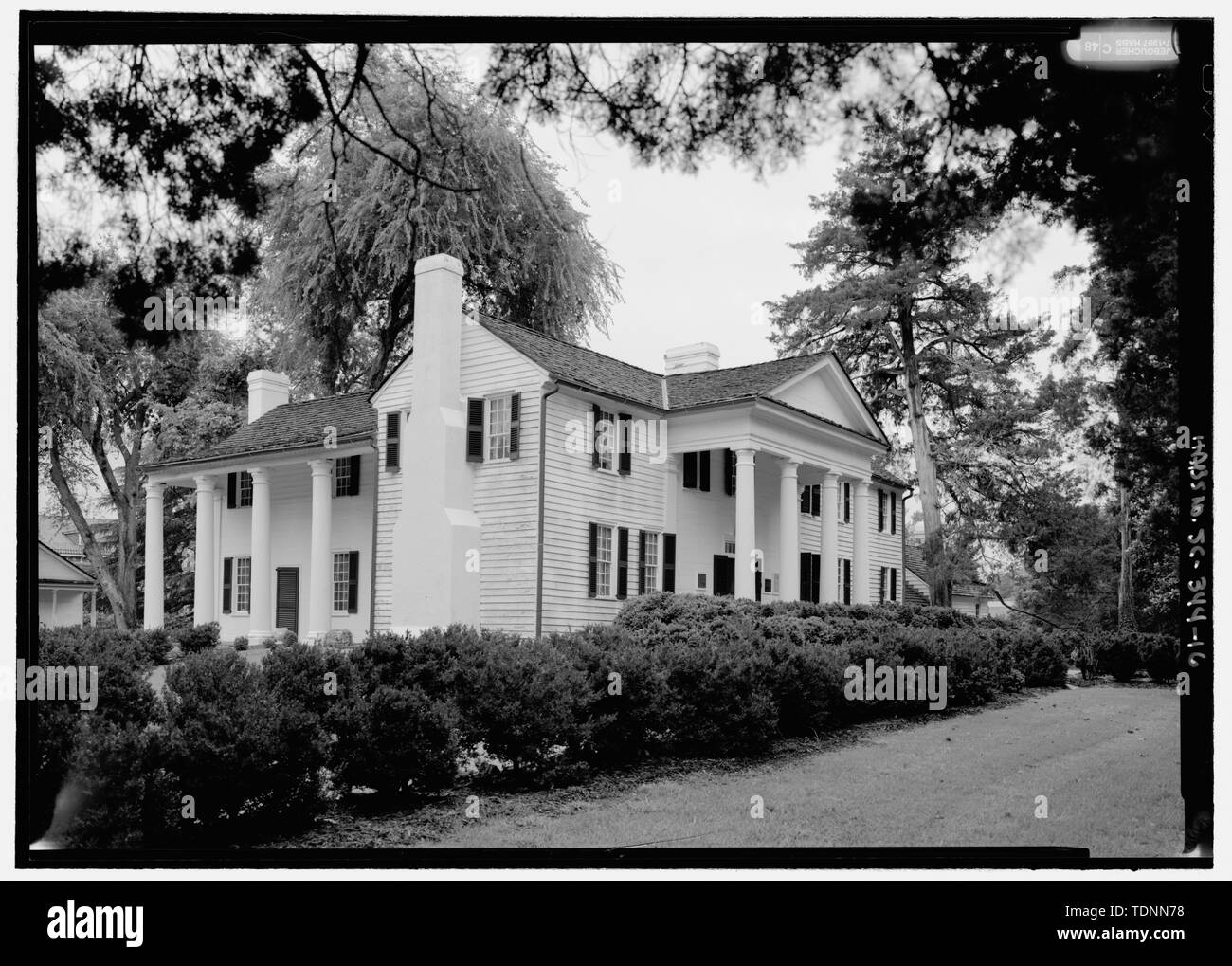Perspective View Looking From The Northeast To Show East Elevation And North Front Elevation Note Portico On East Side Tucked Under The Extended Gable Roof Of The Wing Much Like A Shed Roof